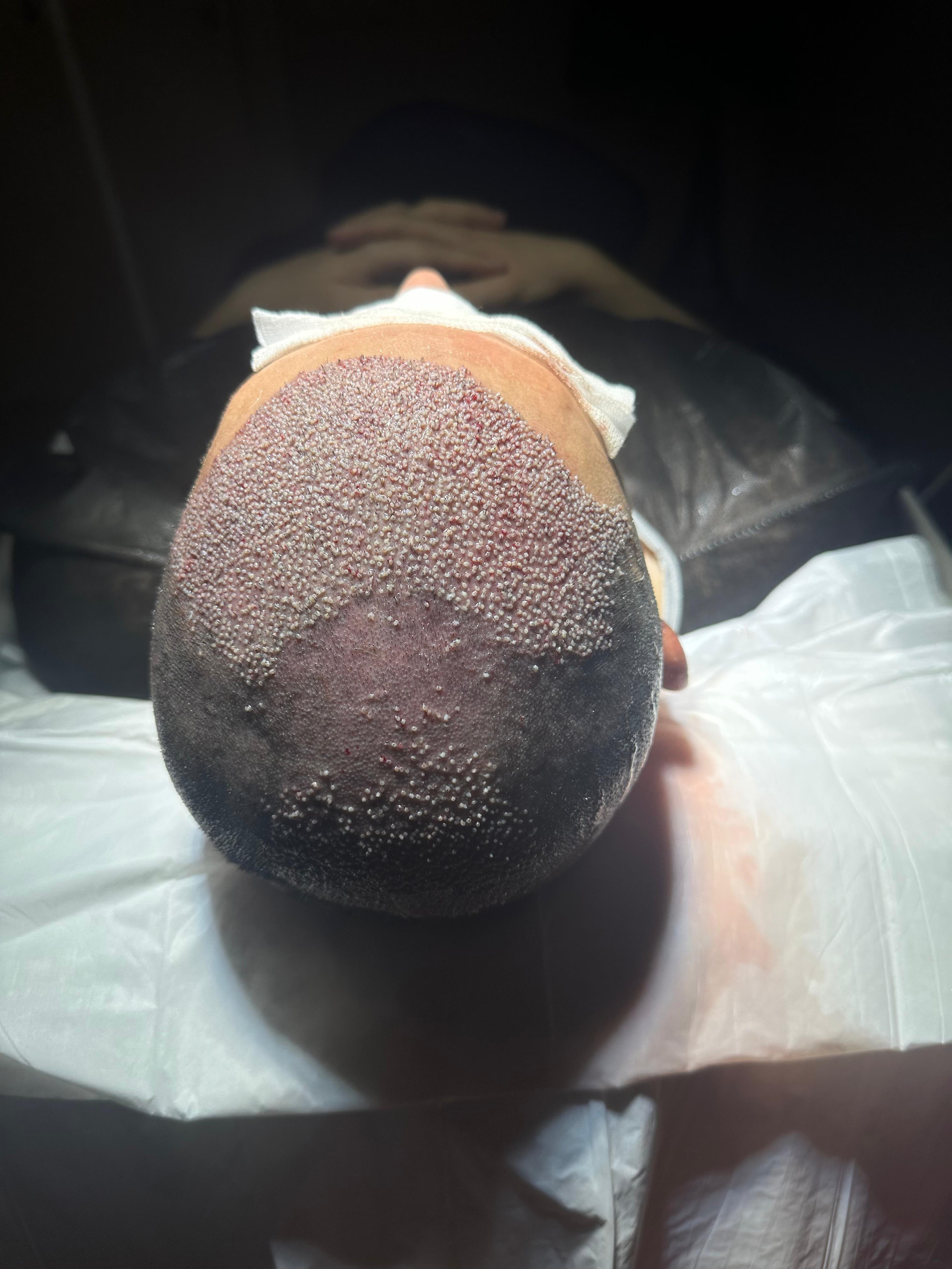 The procedure itself was long (you are moving 4,600 hair follicles, after all!), but far more comfortable than I anticipated. The local anesthesia involves a few pinches, but after that, I was completely numb.