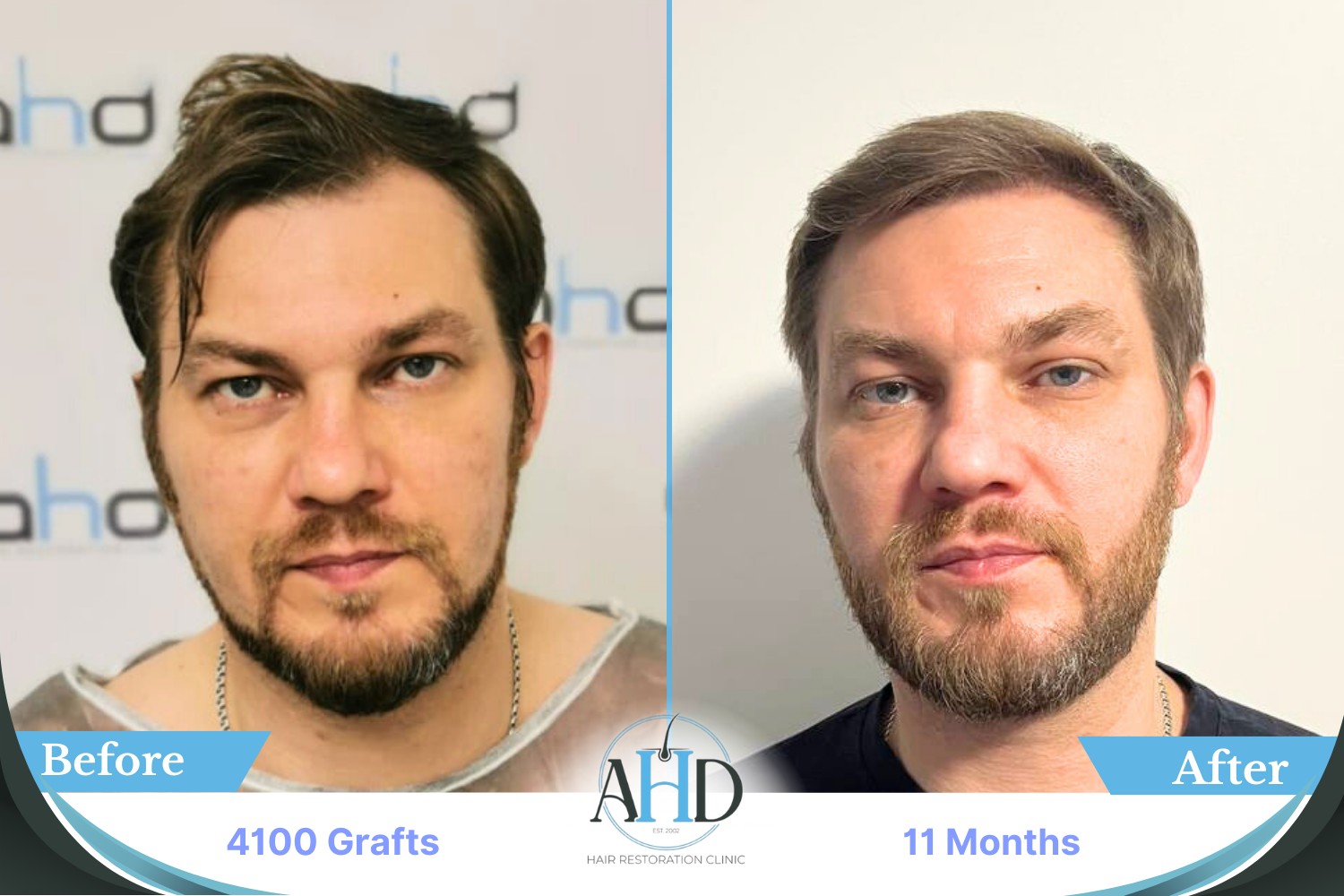 The operation was performed at AHD Clinic of Dr. Hakan Doganay, MD, an IAHRS -recommended hair transplant surgeon.