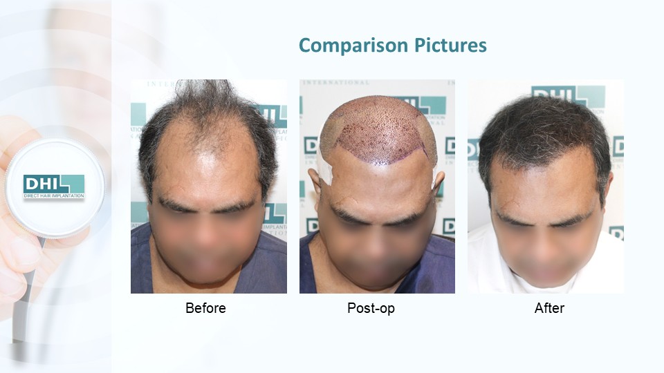 Total Grafts Implanted: 3,778 Grafts (10,049 Hairs) using the technique of Direct Hair Implantation.