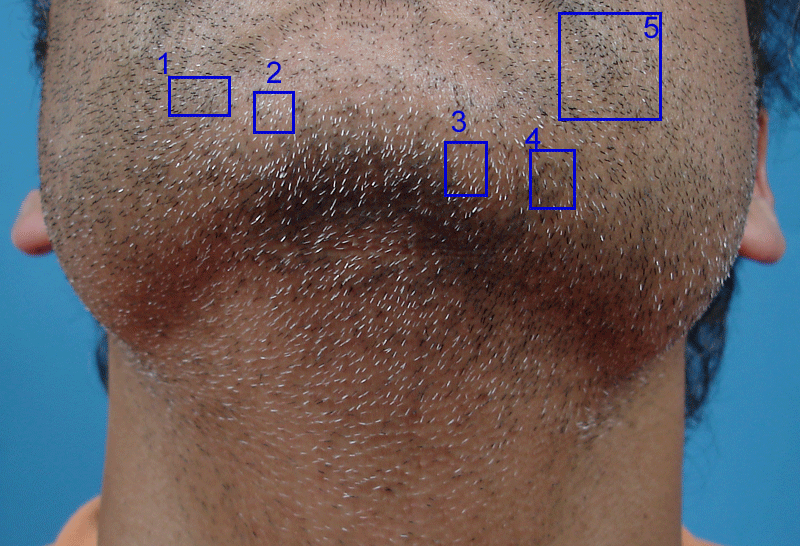 The following picture is taken BEFORE any extractions from the beard donor area.
