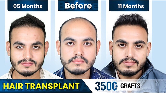 - Grafts Used: (Exact number not disclosed, but typically for Grade 5 baldness, 3000–3500 grafts may be used)