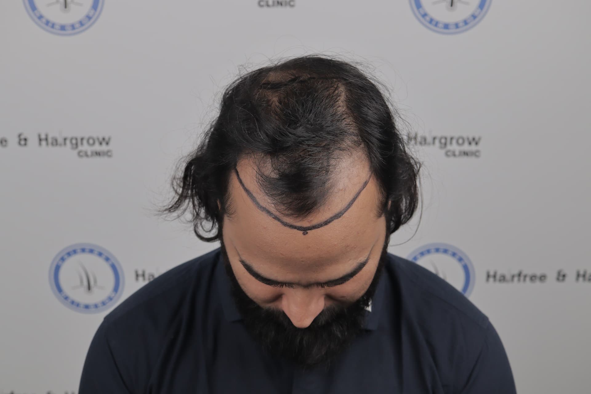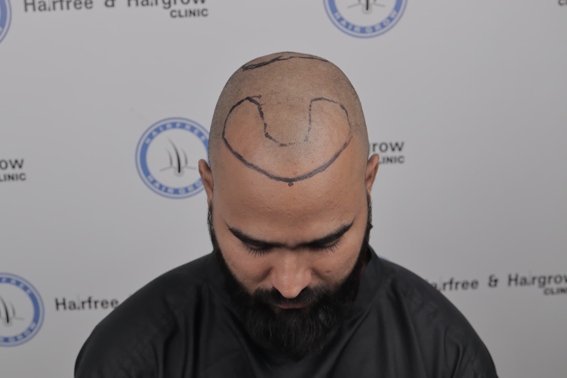 The first step was careful hairline design. For Rocky, the goal was to restore a natural, age-appropriate hairline that blended seamlessly with his existing hair. Both the frontal area and the crown (where mild thinning was visible) were marked for implantation.