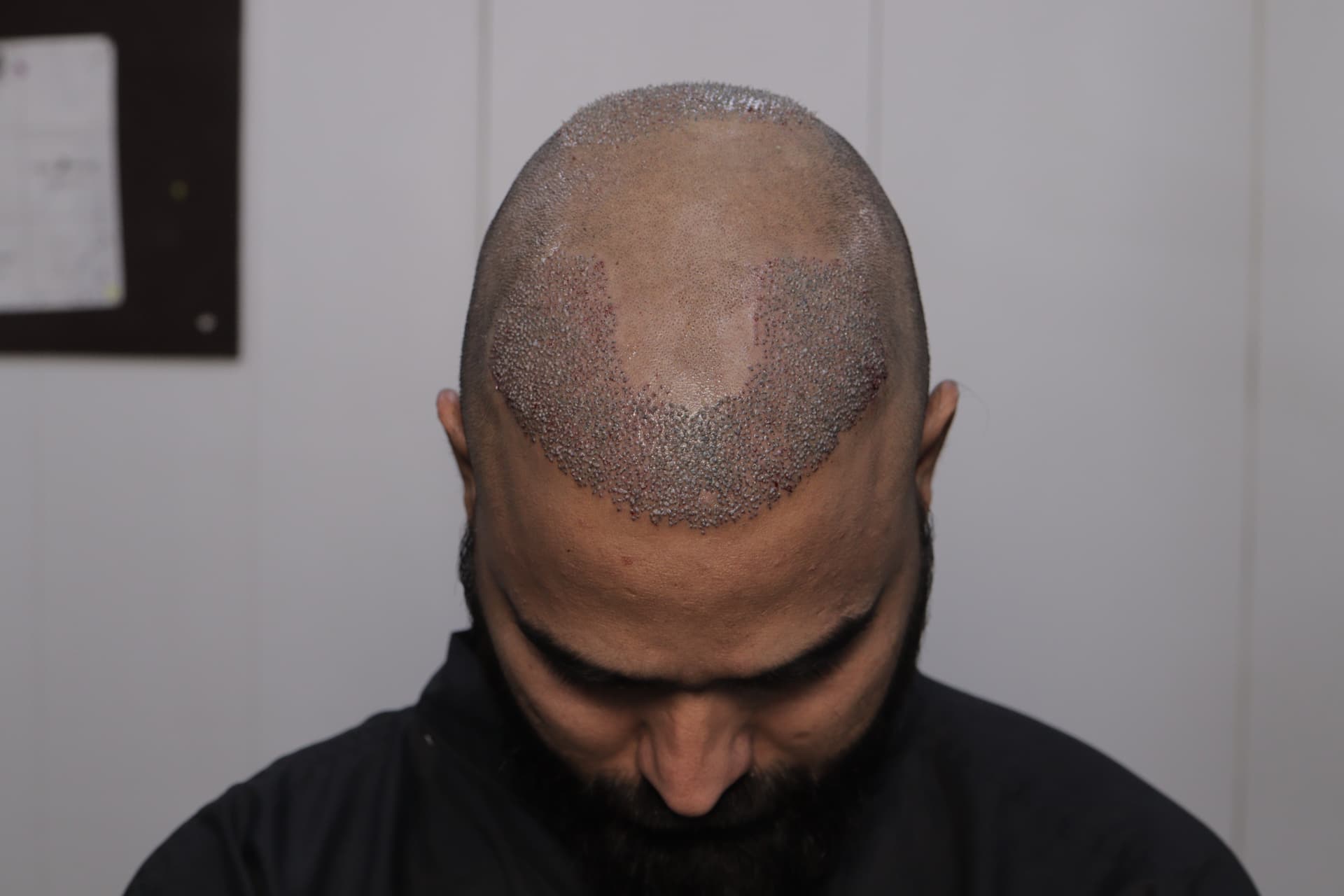 His scalp and donor area were thoroughly examined.