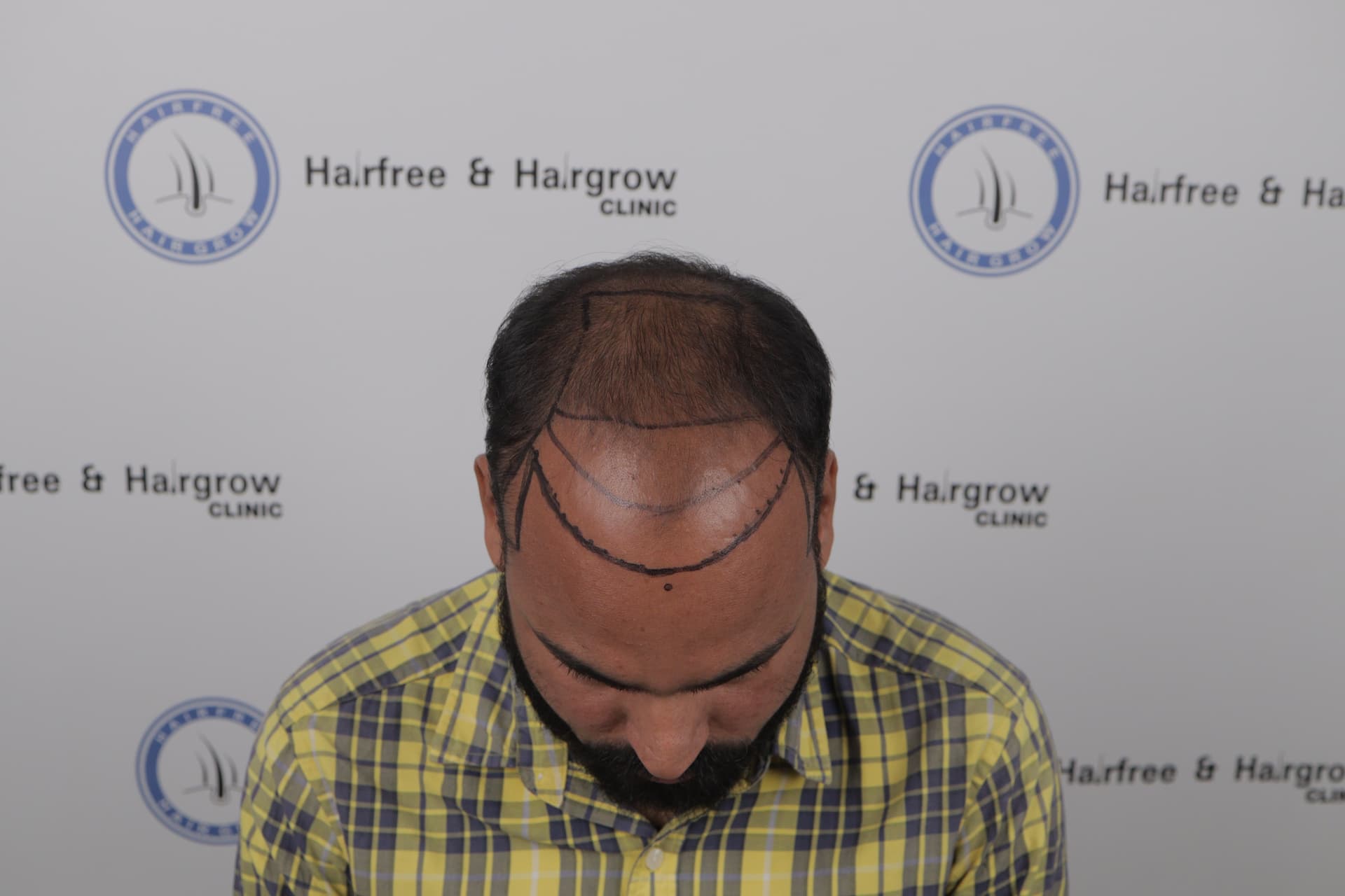 His baldness and donor area were carefully evaluated.