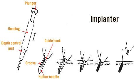 I just spoke with Dr. Cole about the Implanter. He explained implanter devices have been around for years and he has never seen good yields when this type of device is used. The patients he has seen who have had surgery utilizing implanter devices have orange peeled looking scalp with a poor yield because these devices tend to “bury” grafts too deep. Attempts at repair have been disappointing. A few doctors are reporting better yields with some of the newer implanters, but Dr. Cole feels that there is really no reason to use one.